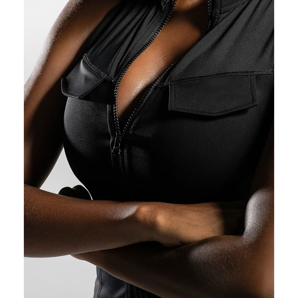 No traces, no sultry, no burden, high-rise collar zipper design can easy to wear;