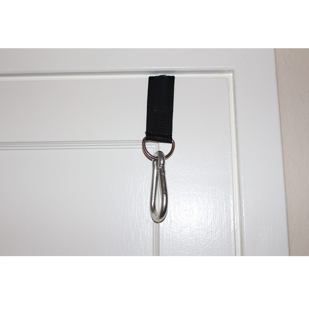 This is a must have accessory to add to your home or travel workout kit. Just loop this over your door at whatever height that you want and close the door. Next add whichever resistance band or suspension strap you want to the clip and start working out its that easy.