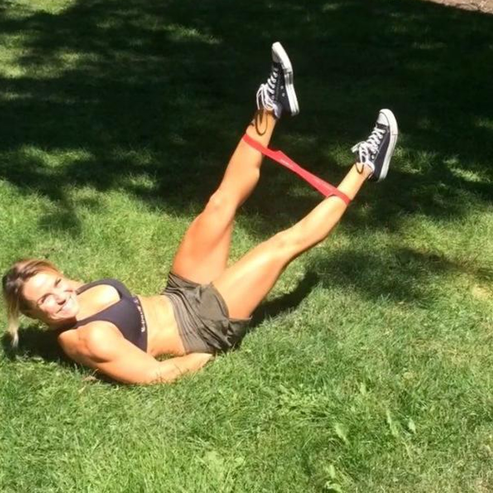 Use the Red band around your ankles to do your kick backs and side lunges.