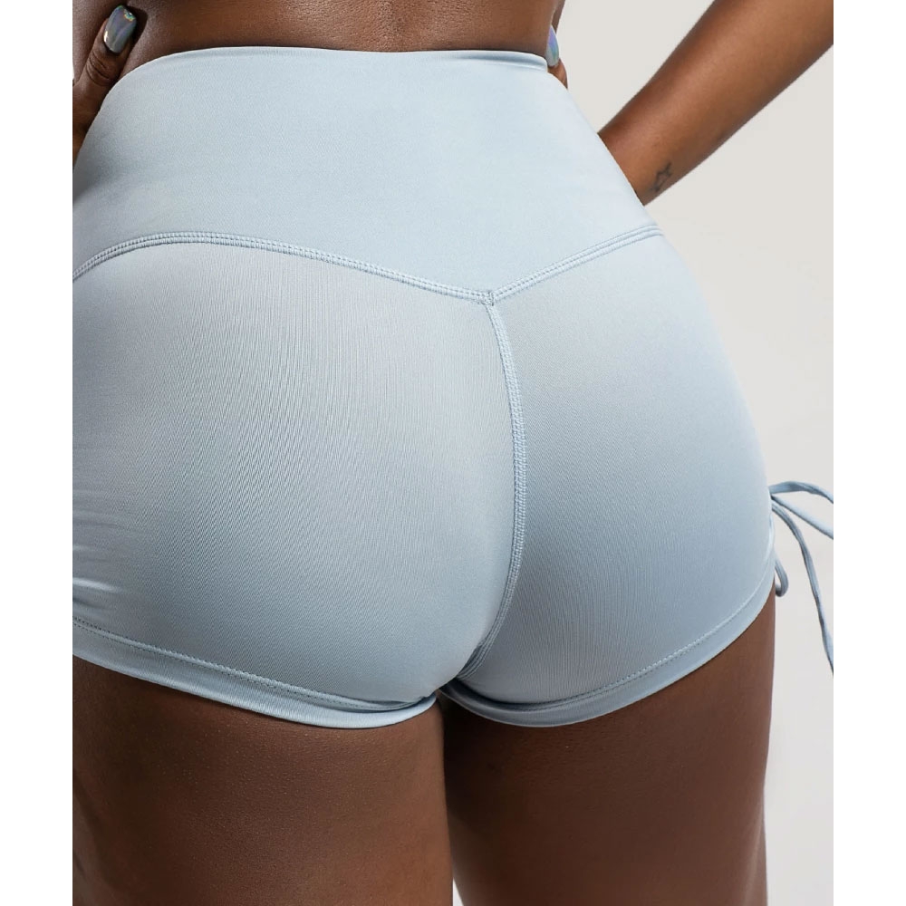 Leg-side drawstring design for easy adjustment and increased fashion elements.
