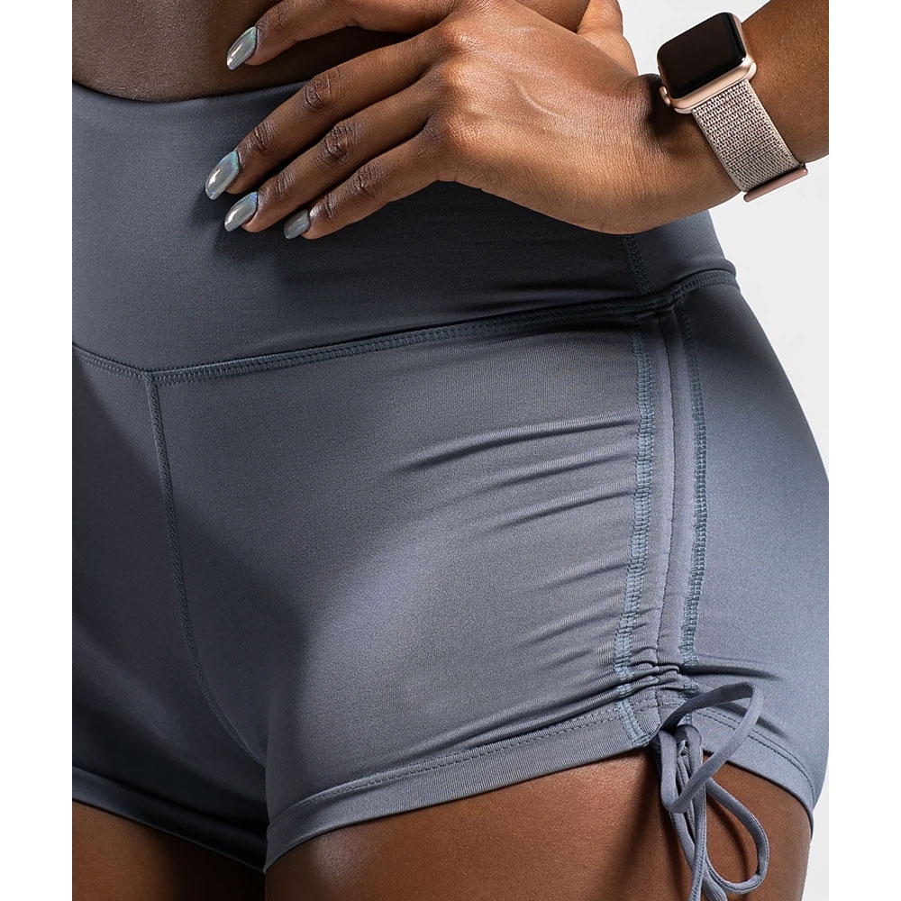 Leg-side drawstring design for easy adjustment and increased fashion elements.