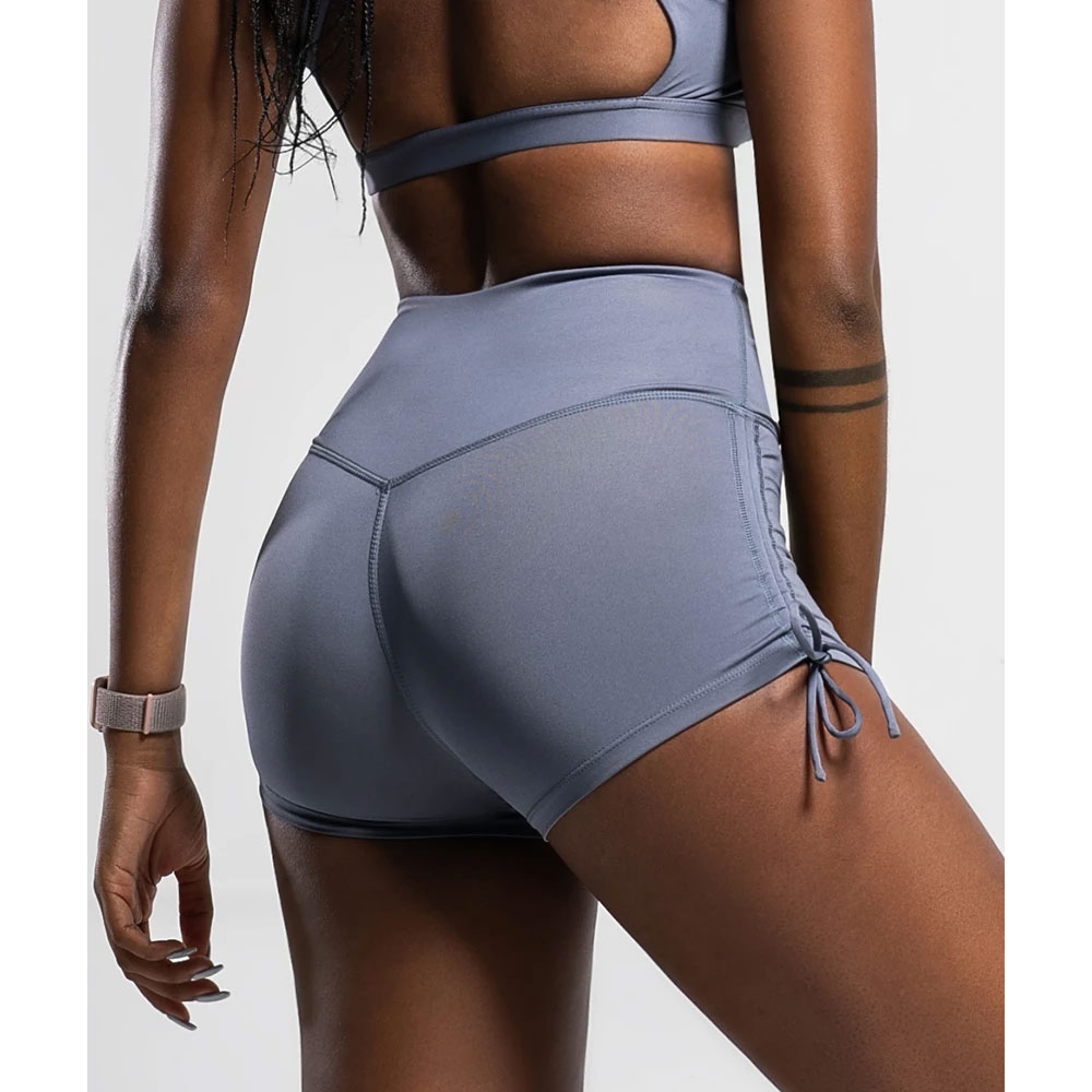 Leg-side drawstring design for easy adjustment and increased fashion elements.