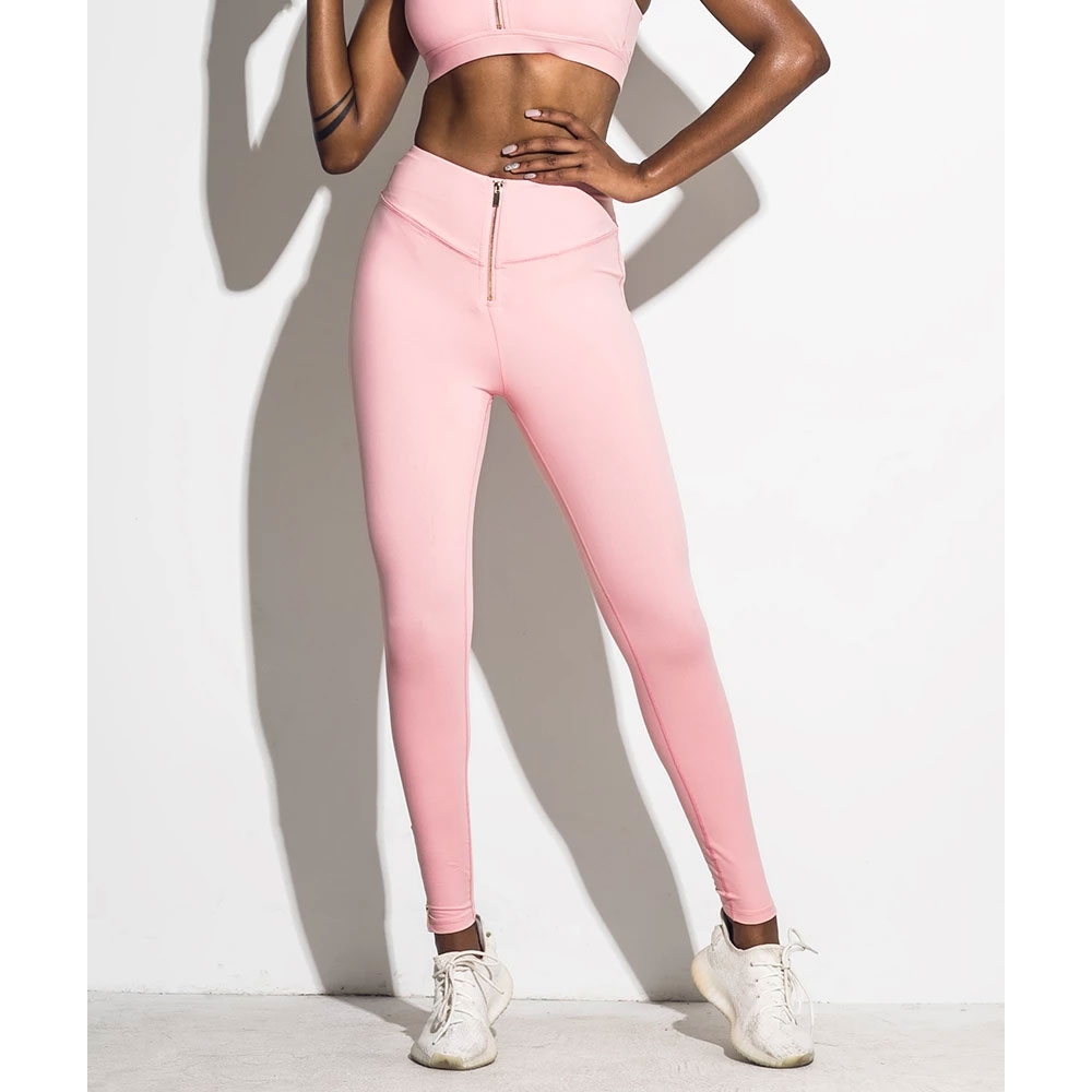 long leg length and metal zipper design can solve for Big Hip fitness girls wear troubles;